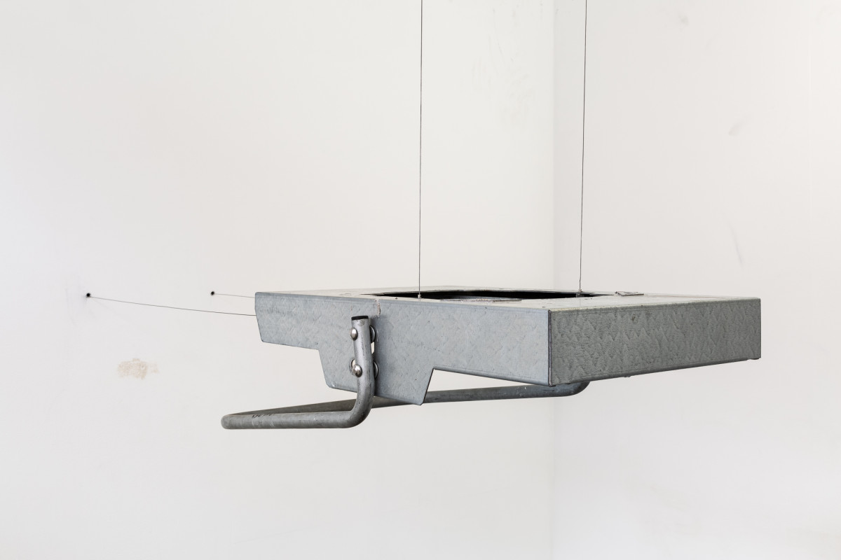 The functioning qualities of the industrial object, omnipresent within the space, blurs the line between art object and architecture, these thresholds reformatting the gallery as part of the work. The peculiar possibilities that art holds is threaded into the foundations of the building, warping the structure we assume as both reliable and stagnant. As object and building intertwine the space is reassessed, no longer receding into invisibility, dragged up for closer inspection.