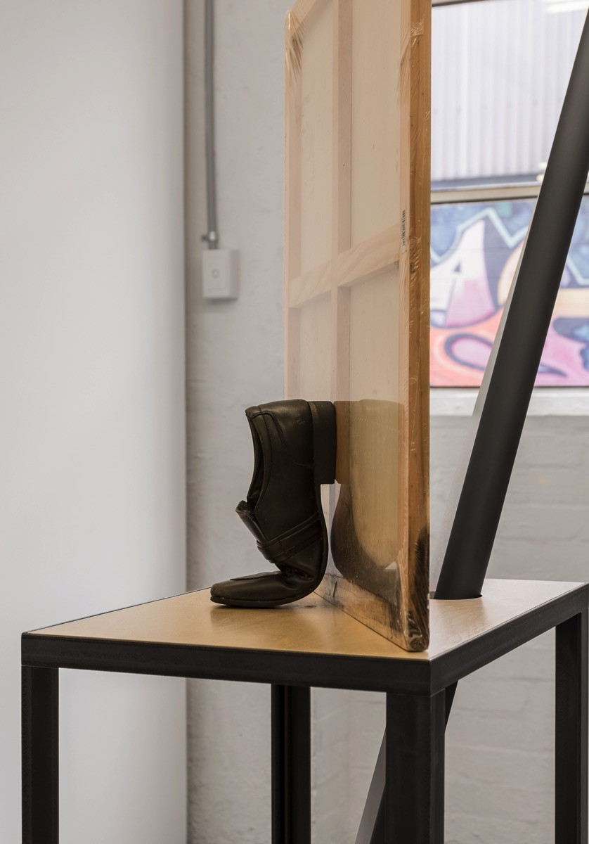 “Begins to Collapse” is an installation of photographic poster prints, exploring colliding imagery drawn from high and low cultural debris, anchored by a single sculptural assemblage. The work incorporates a complex photographic montage drawn from the surrounding peripheral environment. This chaotic landscape, alienated from the picturesque – is configured in the gallery as an immersive field, collapsing elements of the absurd, the formal and the poetic. Characteristic of his broader practice, and in part the way we experience the world, “Begins to Collapse” embraces the cryptic, odd and happenchance encounters with the everyday.