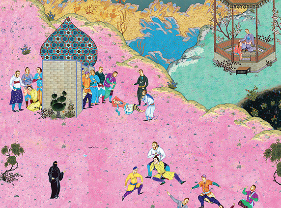 Loaded with contemporary and historical images, the work reflects Hilton’s interest in the role