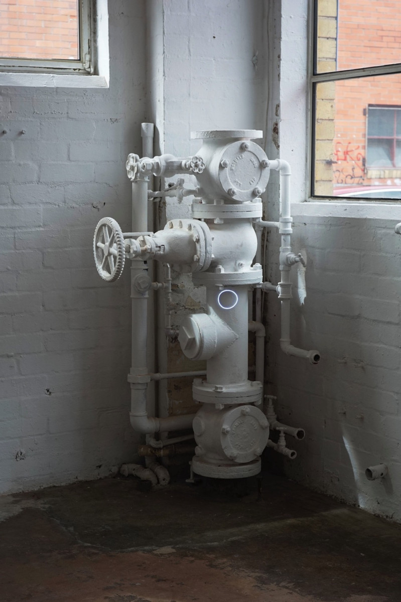What are the facts? There are walls, a floor, a ceiling, and windows. The windows are windowed themselves: rectangles within rectangles. The walls are marked, textured and contoured. There are features; mysterious, residual forms from prior purposes. Rendered uniform white, they nonetheless are there. Factually present. Here, now, you look around, at, through the space. You see things, perhaps for the first time. You see a space that is constructed: without and within.