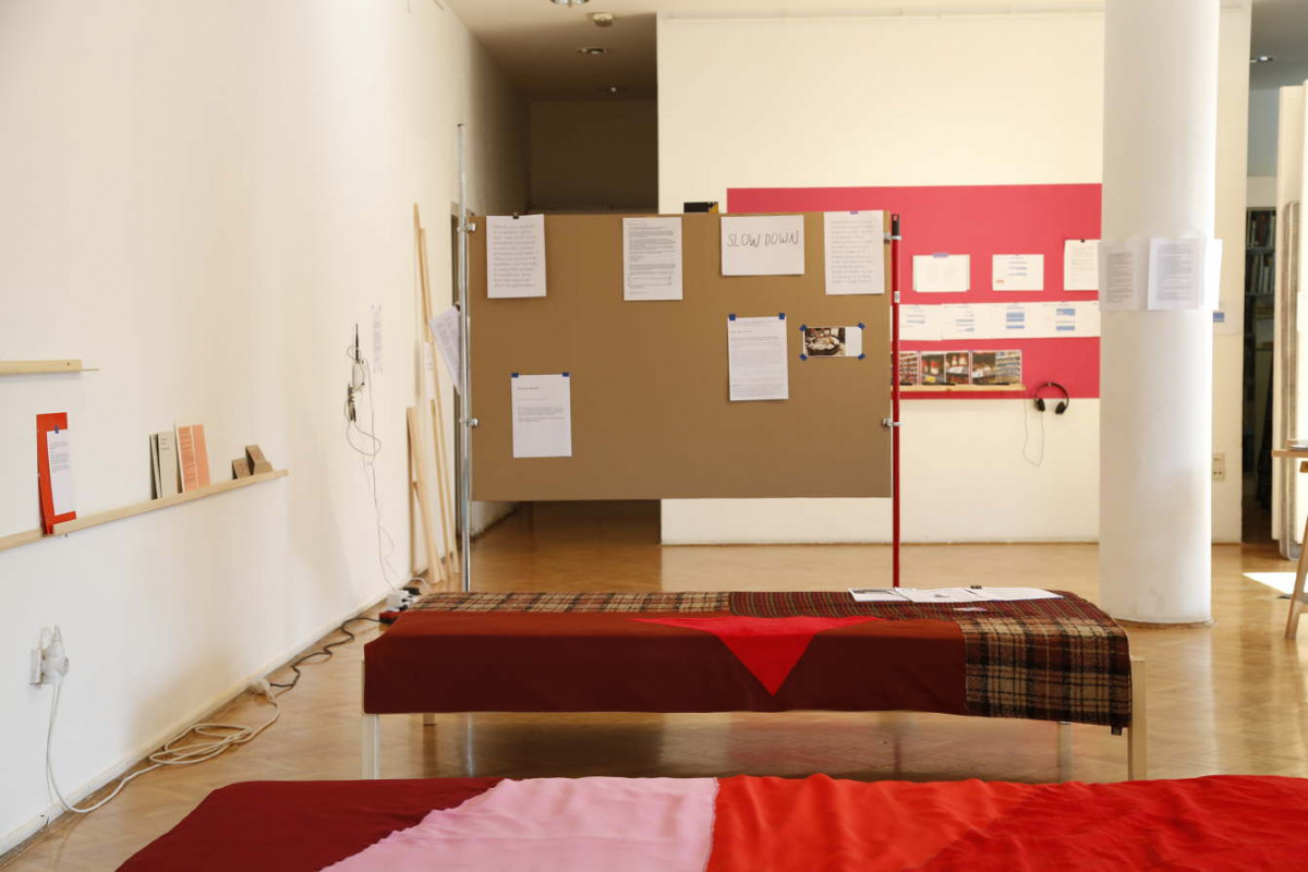 research. Her practice is both conceptual and social, focusing on the gallery as a site for dialogue and thinking – beyond modes of representation, to possibilities of being together and experiencing together. Early installations employed text, abstract sculpture and assemblages of vernacular objects to approach social issues around group identity, displacement and bureaucratic cultures, while more recent works use dialogue-based processes to create shared spaces. Born in Petropavlovsk, Kazakhstan, she studied architecture and Theory and Practice of Visual Communication at the University of Kassel and School of Art and Design Kassel, Germany. She lives in Sydney and Berlin and is a member of the non-profit artist and non-artist run initiative Frontyard Projects in Marrickville, Sydney.