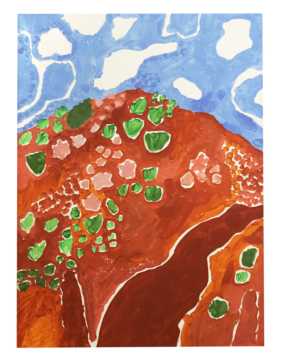 Kalkadoon, Arkie’s second collection of work explores themes of both displacement and reconnection with her country, culture and family. Through sculpture and mixed media canvas work, Arkie reflects on stepping foot on the land her Grandpa’s mob has resided on for thousands of years for the first time. Exploring the complexities of growing up as a Blak girl in the city with only stories of home, these pieces represent a puzzle piece falling into place.