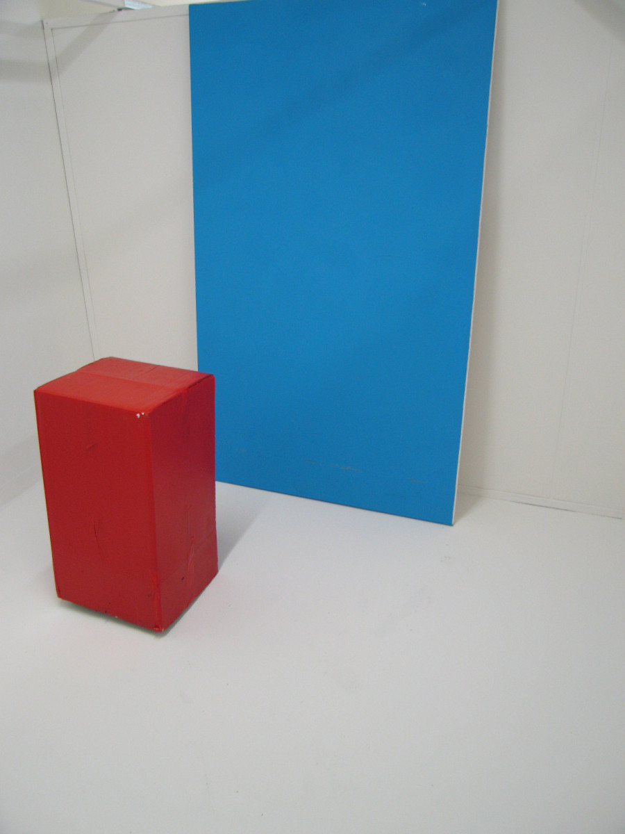‘I use classic forms often made from commonplace materials (cardboard, tape, paper and canvas) to create colour-fields in a dialogue between real and pictorial space. I try to activate space theatrically, where colours can play a character in a staged narrative. I often incorporate a material into the work that brings object-ness to my paintings and at the same time preserves its two-dimensionality. The margins of the camera screen and the flatness of the image that it provides in my work allows real space to act as a metaphorical picture-plane where all moving objects within it can become paintings.