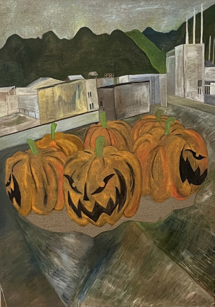 In spoken and written language, mnemonics offer memory-triggers. As a visual language, painting offers triggers that dislodge the forgotten corners of memory and that retrieve them into new associations. The act of viewing a painting involves processes where a visual field activates responses that link the recognisable to the mysterious or forgotten, the past and present, the commonplace to the profound. In this series, Hoffie combines readily recognisable symbols and forms with aspects that may appear contradictory and unrelated to weave together a new provisional narrative. Hoffie uses traditional materials and approaches to painting and juxtaposes them with sometimes half familiar forms from popular culture and other contemporary realms. Hoffie work nods towards traditional landscape painting populated by subject matter from contemporary culture that seem both eerily strange and oddly familiar.