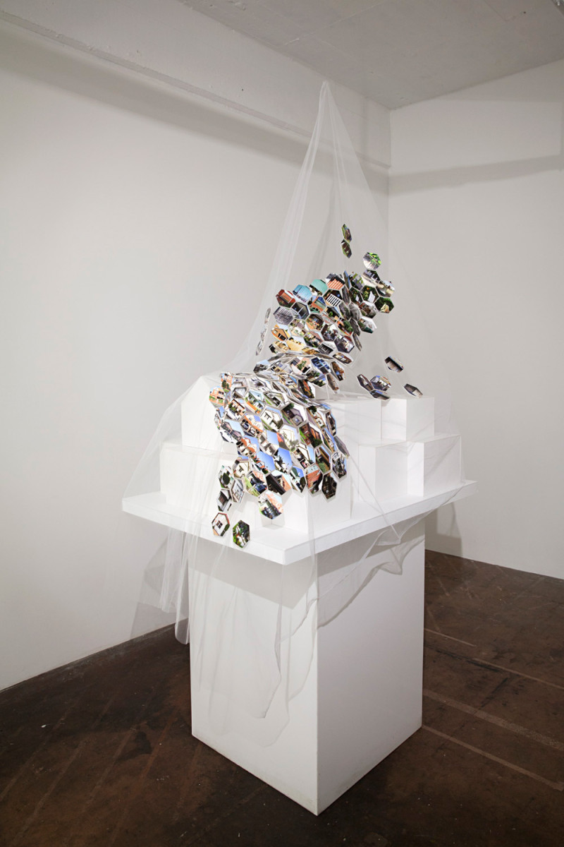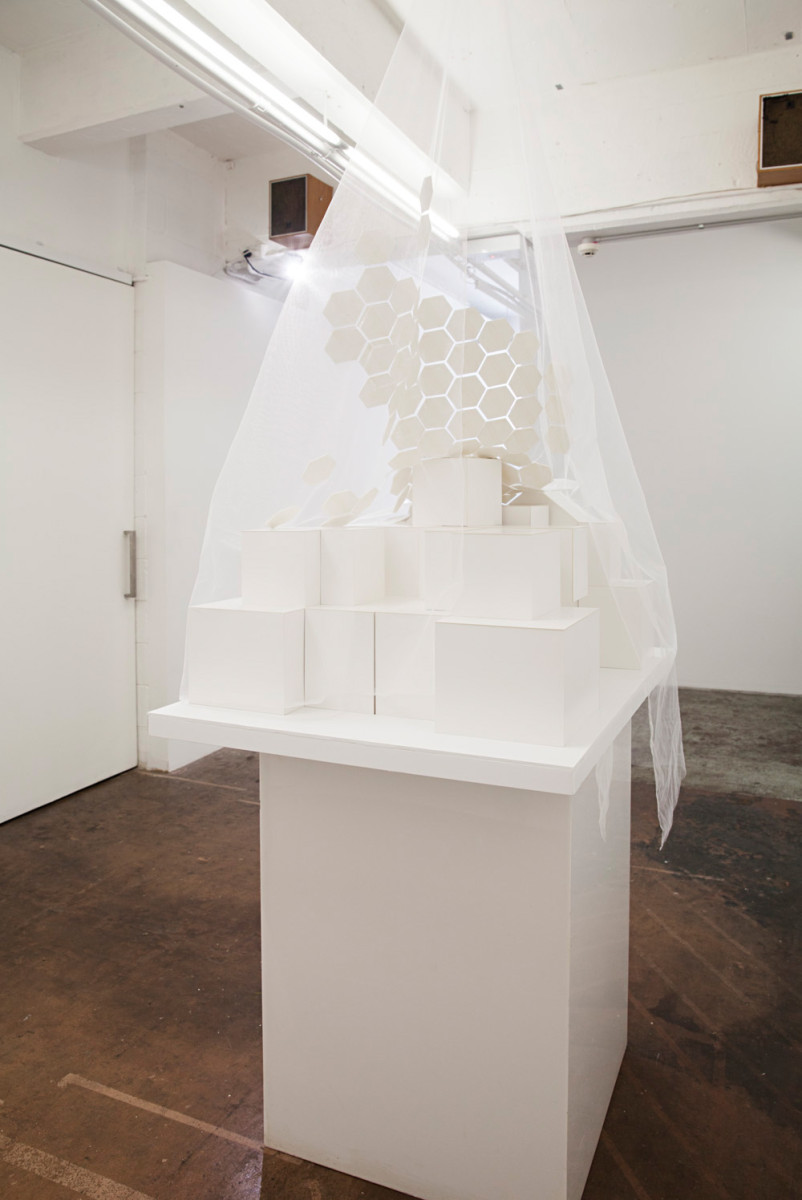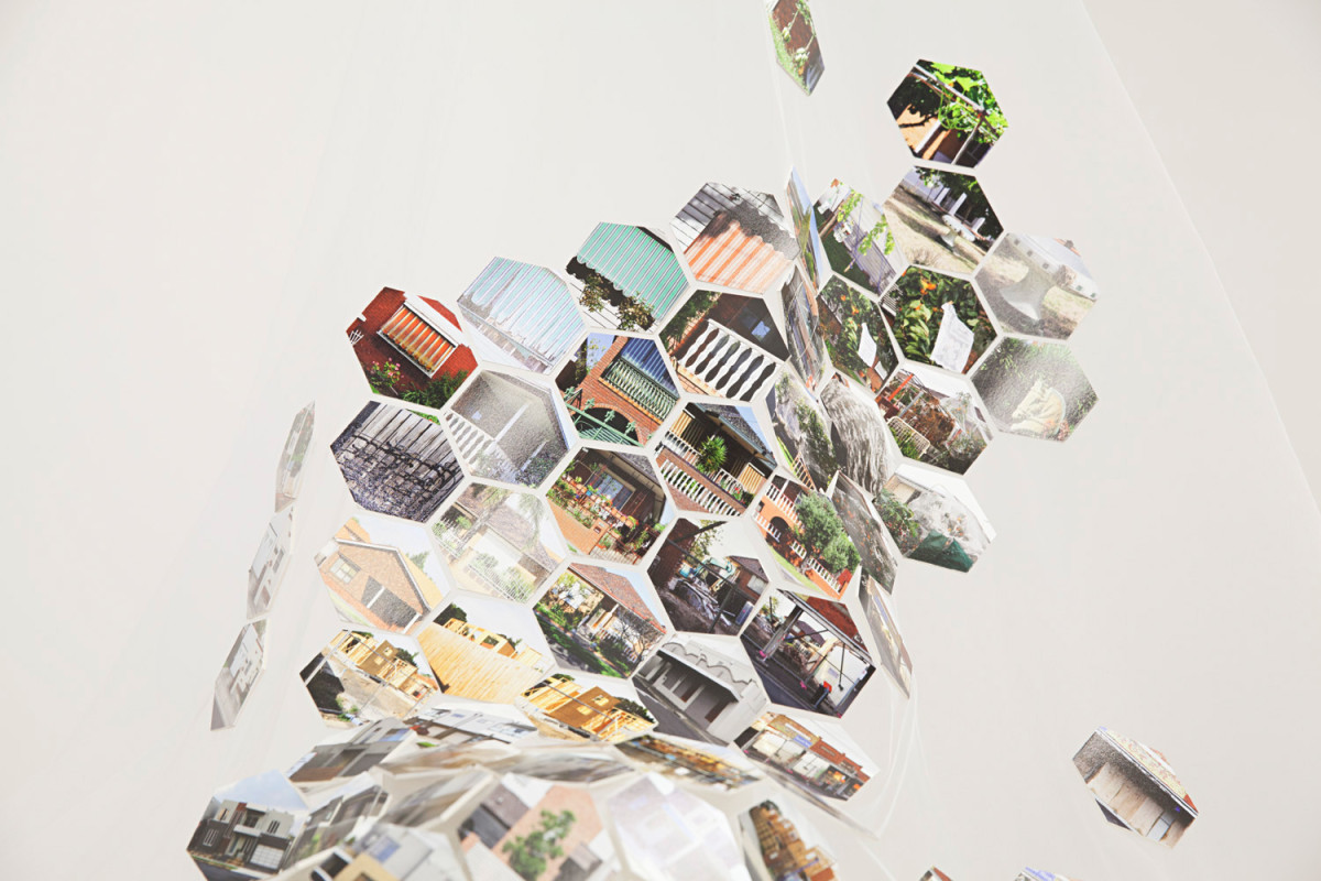 ‘Multidwelling’ displays the changing texture of Melbourne’s streetscape, as the great Australian dream shrinks and a denser Australian ugliness increases. Strange outcroppings of brick, timber and stone veneer, with unblinking aluminium-framed eyes, rise up in the wake of every bungalow demolition. Will they last long enough to accrete their own cultural capital? Should they? Is our addiction to tasteful, detached period homes a greedy, first world indulgence, and yet another manifestation of climate crisis denial? Or do we risk losing the fragile membrane of social memory and identity that our built environment focuses and coheres? ‘Multidwelling’ raises these questions, connecting them to the fraught position of the independent arts scene, itself mired in the real estate market, tethered to the architecture of the white cube.