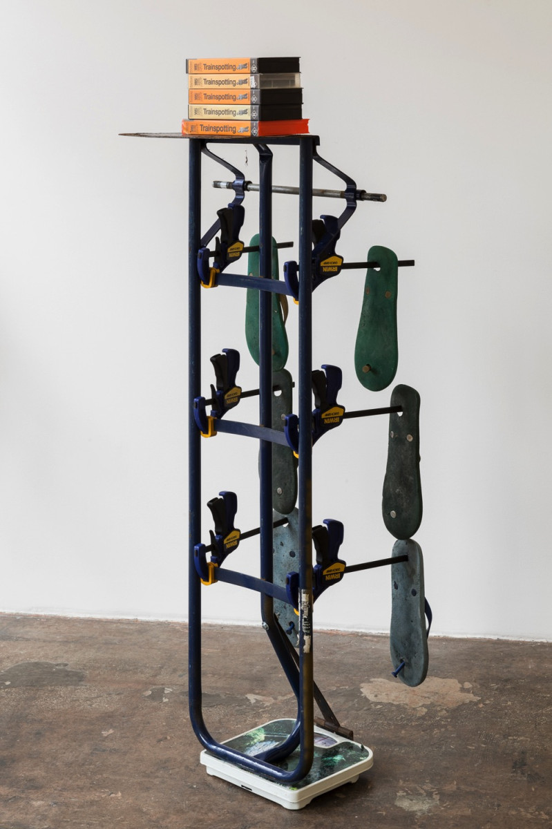Each of the pieces (containers) in the exhibition use a certain tool as plinth, such as scales and hand trolleys, referencing devices that aid in the movement or comprehension of objects. These items demonstrate their own ‘readiness’ to be transported, inherently mobile by design.