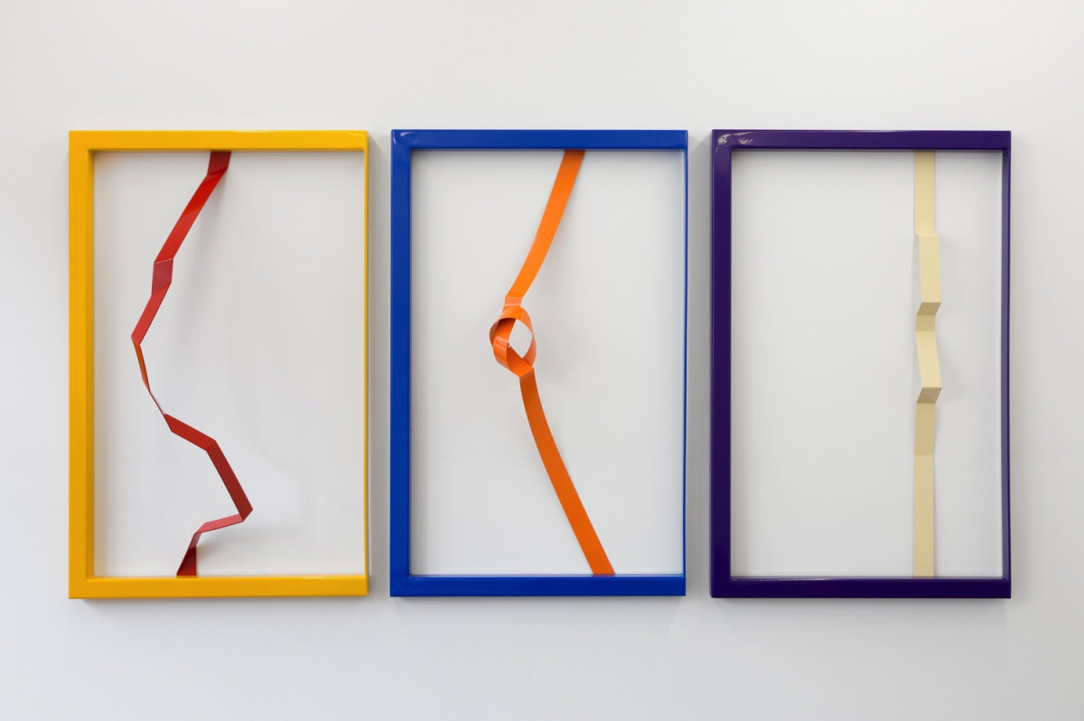 Utilizing the post-painterly and sculptural arenas of minimalist construction, this body of work examines a fanaticism with the result of material behaviours. Rigorous formal experiments explore the introspective quality and theatre of material assemblage in play. In particular, steel and plastic will be used to examine the possible roles of object hood in space, existing three dimensionally, yet referencing the platform of the image.