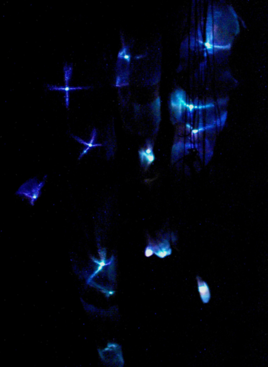 ‘Siren’, 2009. Dimensions variable. Fabric, movement sensors, speakers, 4 channel sound loop, 3 channel generative sound, digital samplers, lights. Technical collaboration with Tony Falla. Voice work by Samantha Bews.