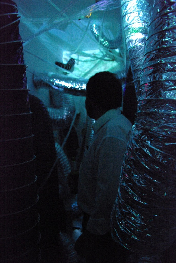 Mutated and infinitely reproducing, the system consumes the viewer. Build as a site specific sculptural installation for Bus Gallery Skinny room, Space Invasion will crawl walls, protrude from the floor and drip from the ceiling above collapsing, bulging and sweeping down to ground level.
