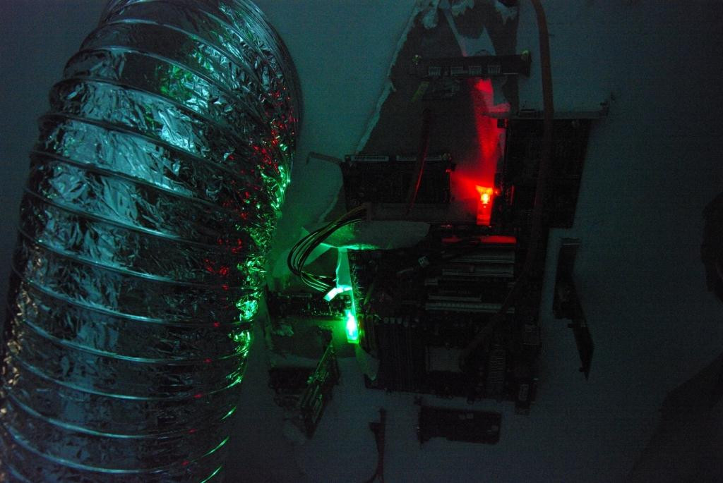 This work reflects the morph between grid matrix, rebuilt as analogue machine with the touch of the artists hand visibly present. The work becomes about the system in collapse, the bulge, the “glip”, the organic…as in reality the grid/ matrix system is moulded by the people who live within it.